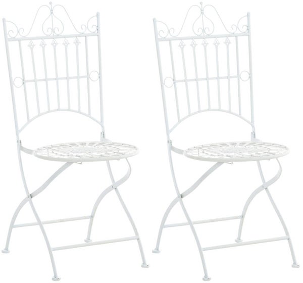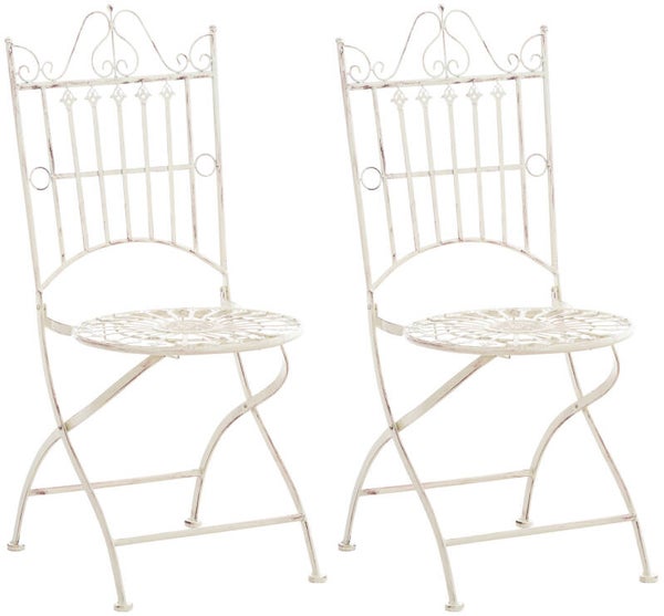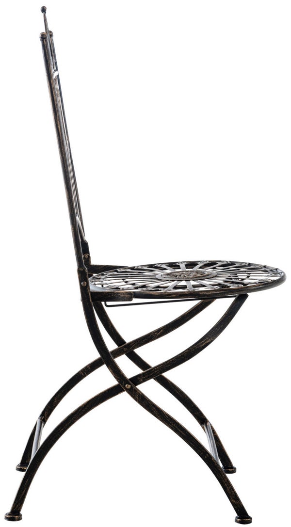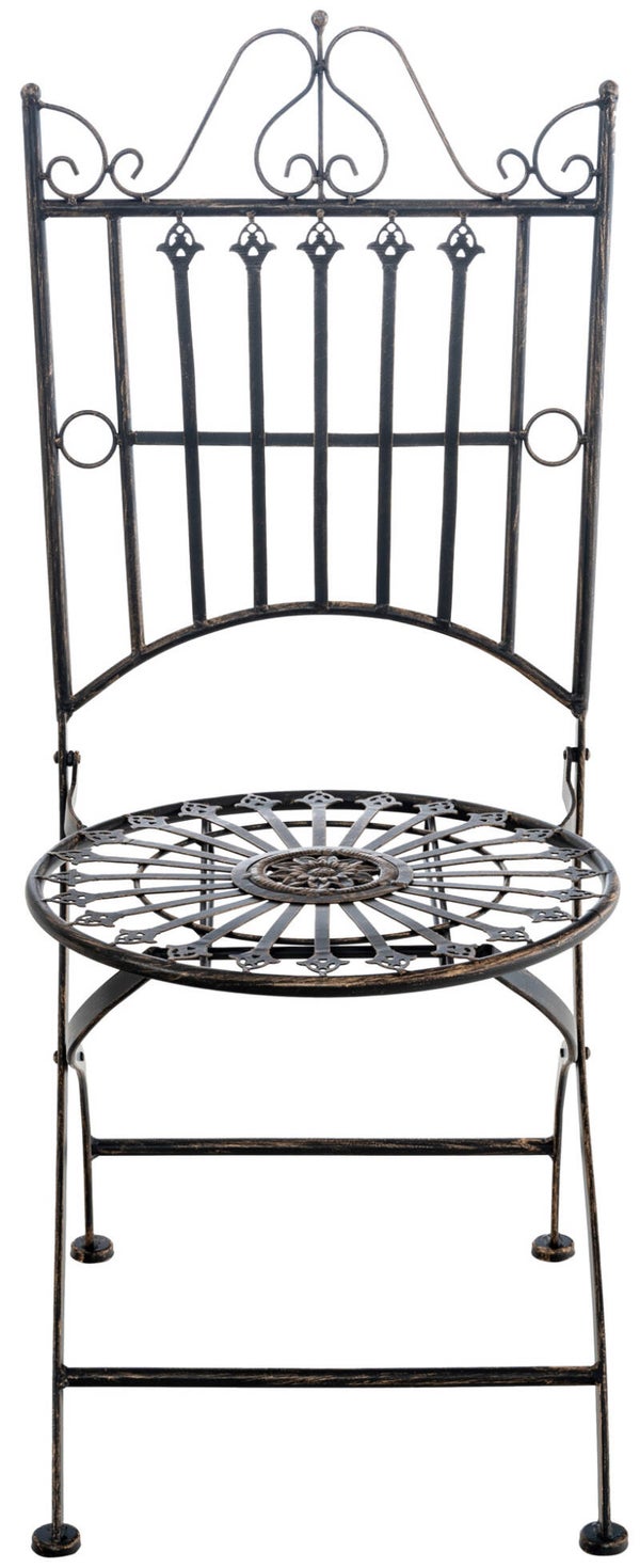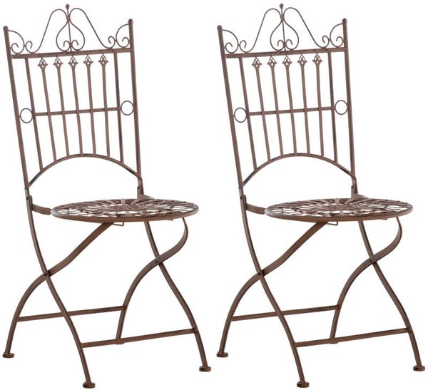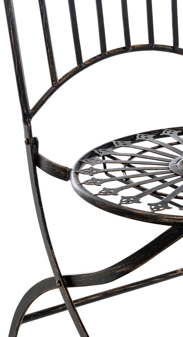 Diese wunderschönen Stühle in nostalgischem Design sind ein echter Hingucker und beeindrucken mit ihrer grazilen Form und den gefertigten Details der Verzierungen. Die Klappstühle eignen sich perfekt, um Ihrem Lieblingsplatz im Garten eine besondere Note zu geben. Die Gartenstühle wurden aus Eisen gefertigt und sind daher stabil. Die Oberfläche ist mit einer antiken Patina veredelt. Die Stühle sind durch ihre einfache Handhabung besonders vielseitig und flexibel. Bei Nichtnutzung können sie zusammengeklappt und platzsparend verstaut werden.