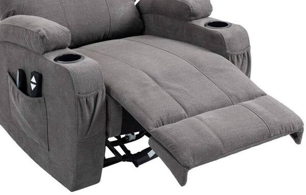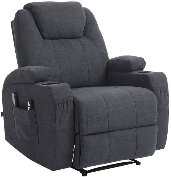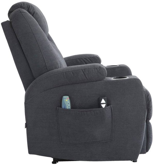Der Sessel Hepler bietet eine Kombination aus Funktionalität und Design. Eine kippbare Rückenlehne und eine integrierte Fußstütze, die sich synchron zur Rückenlehne bewegt, bieten optimalen Liegekomfort. Zusätzlich verfügt der Sessel über eine integrierte Massagefunktion mit anpassbaren Einstellungen und eine Wärmefunktion, die zur Entspannung beiträgt. In den Armlehnen befinden sich integrierte Getränkehalter sowie zusätzliche Aufbewahrungstaschen vorn und an der Seite. Die Oberfläche ist sowohl strapazierfähig als auch leicht zu reinigen, was eine unkomplizierte Pflege ermöglicht. Die Polsterung der Armlehnen ist ergonomisch gestaltet, um eine bequeme Sitzhaltung zu unterstützen.