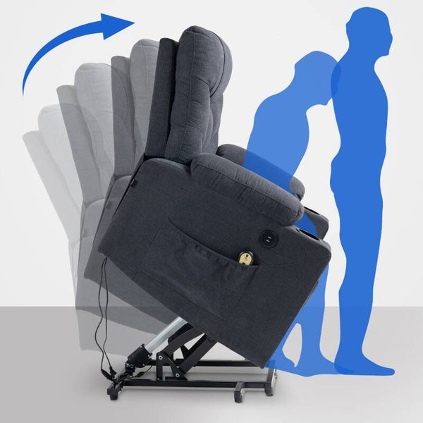 Erleben Sie Entspannung auf einem neuen Level mit dem Andover Relaxsessel. Dieser Sessel bietet nicht nur eine hilfreiche elektrische Aufstehhilfe, sondern auch eine bequeme Liegefunktion, die es Ihnen ermöglicht, sich zurückzulehnen und zu entspannen. Ausgestattet mit einer stabilen Rückenlehne und weicher Polsterung garantiert der Sessel Komfort und Unterstützung. Die zwei seitlich integrierten USB-Ports sind praktisch für das Laden Ihrer elektronischen Geräte, während die eingebauten Getränkehalter dafür sorgen, dass Ihr Lieblingsgetränk immer in Reichweite ist. Einfach zu bedienen dank der kabelgebundenen Fernbedienung, passt sich der Andover Sessel Ihren Bedürfnissen an und fügt sich nahtlos in jedes Wohnambiente ein.